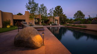 The pleasures of the desert evening are also extended through the considered application of light. “I also love creating a kitchen that clients will enjoy into the evenings with carefully curated FX Luminaire outdoor LED Lighting,” he continues, “The outdoor lighting lets them use their grill and entertain well into the evening, allowing for wonderful events in gathering spaces for great times with family and friends.”