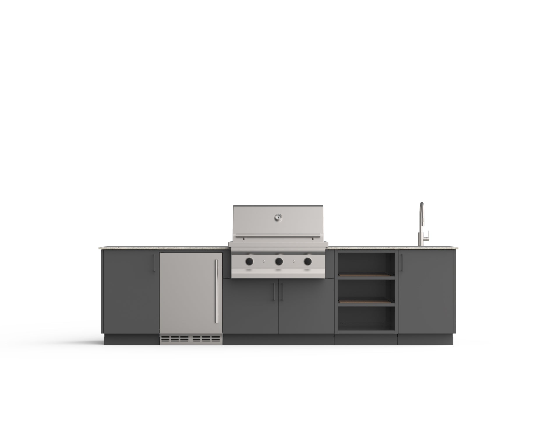 En plus d'un espace pour un gril de 36 pouces et d'un espace de rangement fonctionnel, cette série de cuisines extérieures comprend un évier et un robinet, ce qui la rend polyvalente et fonctionnelle. Gardez votre espace de cuisson propre et organisé, avec un nettoyage facile par la suite.